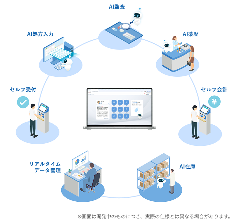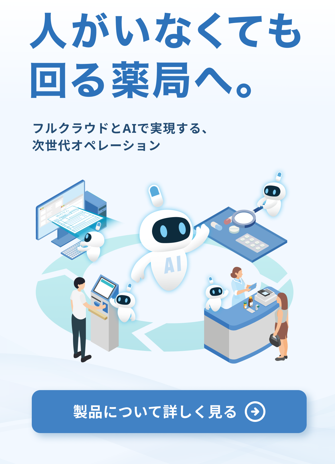 AIとクラウドを組み合わせ、受付から会計までの業務をシームレスに。 最小限の人数で効率的な薬局運用を実現します。